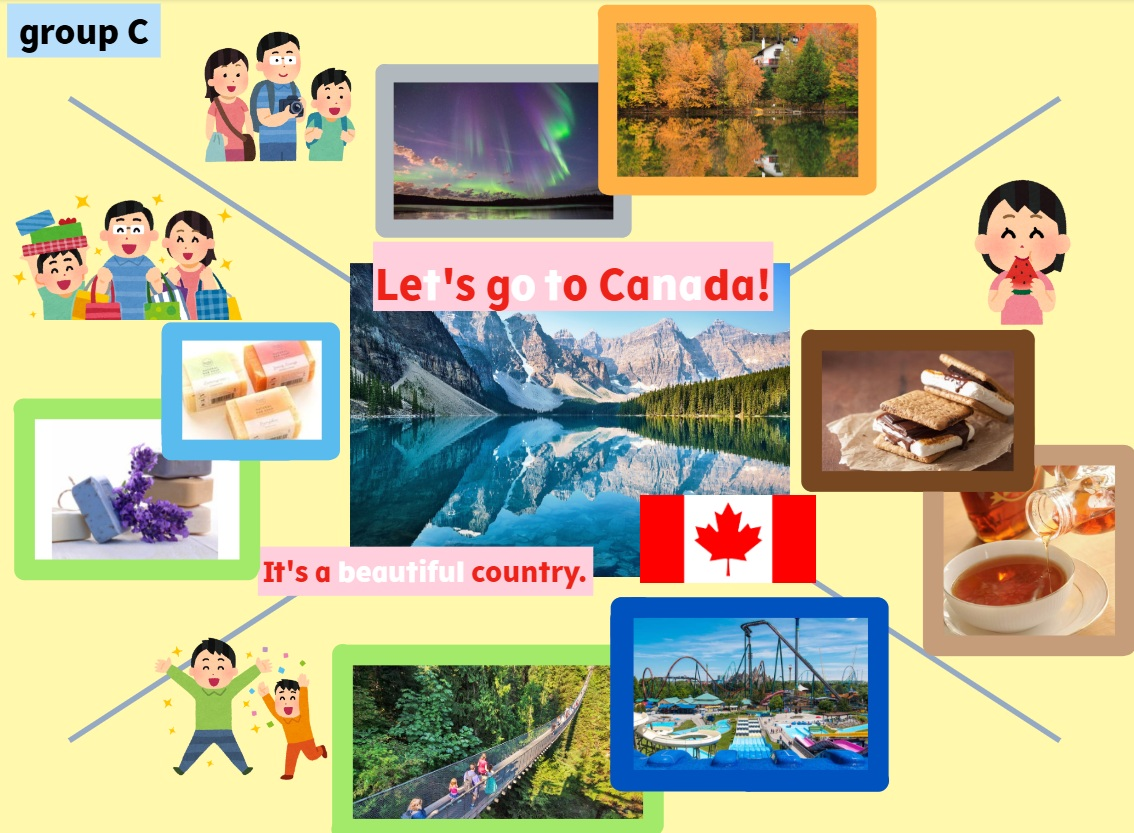 Students created visually appealing presentations by embedding images, videos, and animations to support their points. They also discussed and planned where each member would speak, and shared strategies on how to engage the audience in English. In this way, students practiced communication skills with each other, even while creating the presentation.